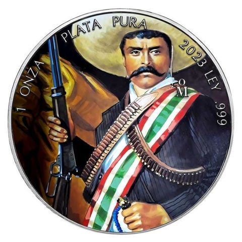 Mexico. 1 Onza 2023 1 oz Mexican Libertad Pancho Villa Bullet Mexican Flag Co...