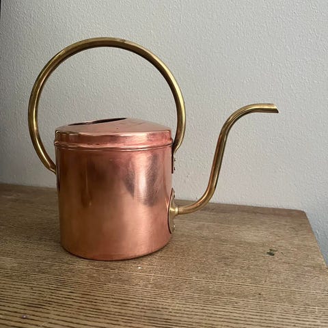 Håndlavet kobber vandkande fra Storbritannien, fra 1950–1960, i god brugt stand med mindre aldersforandringer; højde 35 cm, bredde 46 cm, dybde 20 cm. Klik på den blå "gå til varen" knap, for at købe eller byde på denne vare. Den samlede pris vil blive vist inden du afgiver dit bud.