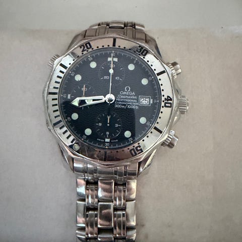 Her tilbydes en iøjnefaldende OMEGA Seamaster Chronograph med den ikoniske orange dykkerinspirerede bezel og matchende orange detaljer gennem hele urskiven. Dette er en moderne, sporty Seamaster-variant, der forener Omegas lange arvestykke inden for dykkerure med en praktisk kronograf-æstetik, hvilket gør den attraktiv både som samlerobjekt og som dagligt bærestykke.