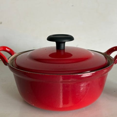 Fantastisk emaljeret støbejernspande, alle varmekilder herunder induktion, fra det berømte franske mærke Chzsseur, ny og i god stand (se billeder)