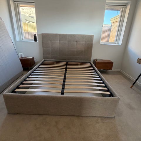 Meget god stand. Sengen er velholdt og har kun lette, normale brugsspor. Opbevaringsfunktionen fungerer perfekt.