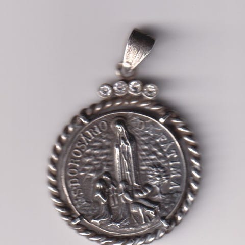 Smuk medallion fra slutningen af 1800-tallet eller begyndelsen af 1900-tallet med stor oval onyx, slebet så det hvide bånd løber rundt om stenen. Indfattet i sølvmedallion belagt med emalje.