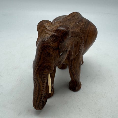Flot Lille træ Lykke Elefant Smukt udskåret og udhulet I træ flot håndværk og med stødtænder.