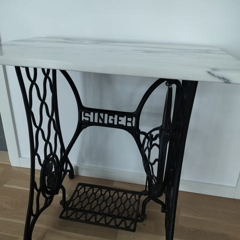 Singersymaskinebord, Gammelt Singer sybord med massiv fyrretræs plade. Super flot. Jeg har brugt det til mit tv, kan bruges til lige det man syntes. Mål 115 cm b 35 cm d 76 cm h