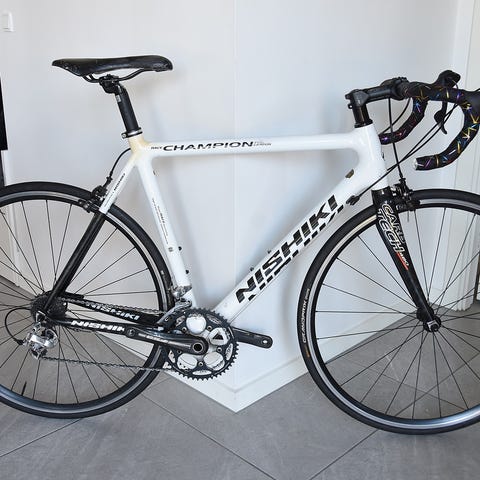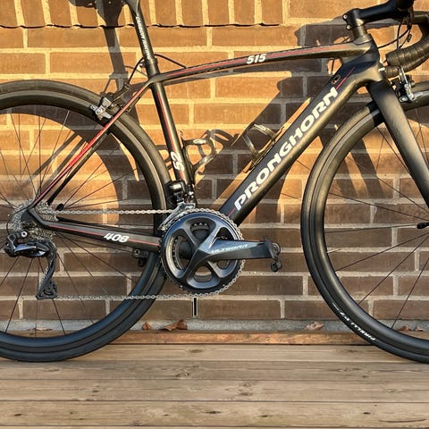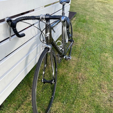 Den er udstyret med Shimano Ultegra 11 speed og dog et dura ace kranksæt med watt måler fra SRM (skal have skiftet batteri) hvis watt måleren skal virke.