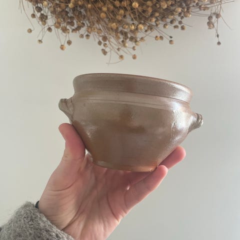 Tags: Lågkrukke ører håndtag GRES du BERRY, Lertøj, Gres de Gien, Grès De Bonny, stentøj, FAIT MAIN, MADE IN FRANCE, Parisien franske Renault pot en gres Pot couvert en grès vernissé lågskål saltglasur stentøjskrukke