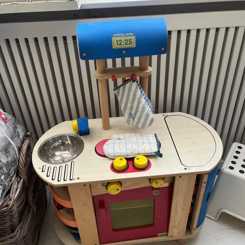 Meget flot gammelt Hukit retro Legekøkken i meget smuk grøn. Blevet leget meget med, både af vores søn og af et par generationers før ham. Virker som det skal. Smukt hvis man vil have den flotte farve og noget andet end ikea :)