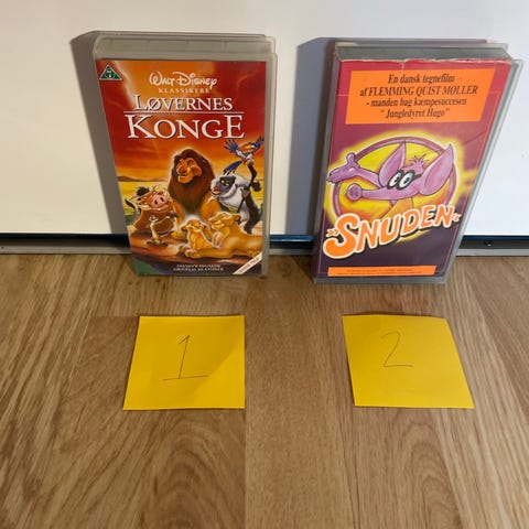 Walt Disney Løvernes Konge VHS videobånd. Klassisk tegnefilm udgivet på VHS-kassette med original plastkassette. Dansk udgave med tryk på forside, ryg og bagside af cover. Egnet til VHS-afspiller, til samling eller brug, hvor dette format understøttes.