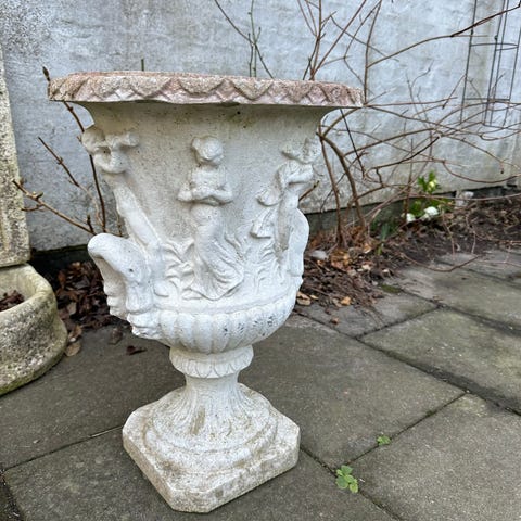 Stor og Smuk, stentøjskrukke med rustik struktur.