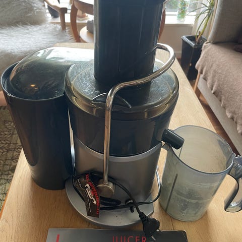 Gastroback Advanced Pro juicemaskine i rustfrit stål. Centrifugal juicer med stor påfyldningstragt, separat beholder til frugtkød og glas-kande til juice. Maskinen har metalhus, tud til direkte påfyldning i kanden og betjeningskontakt på fronten. Velegnet til fremstilling af juice af frugt og grøntsager i husholdningen. Kun AFHENTNING