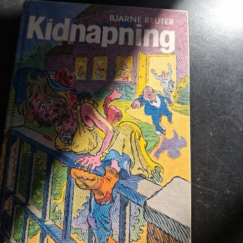 Bjarne Reuter Kidnapning bog. Dansk roman udgivet på forlaget Branner og Korch. 2. udgave, fotografisk genoptryk, trykt i Danmark i 1996. ISBN 87-411-6026-6. Indbundet bog med illustreret omslag af Kjeld Brandt. Velegnet til læsere af dansk børne- og ungdomslitteratur.