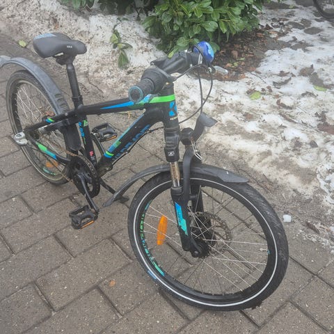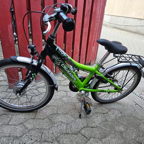 Jeg sælger en børnecykel, det fungerer fint.Hjulstørrelse 20 tommer,Rammestørrelse 28 cm.6 udvendige gear,Mekaniske skivebremser for og bag. ( Den nye pris var 1999kr. )