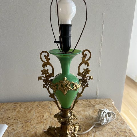 Anden bordlampe, Ukendt, Skøn gammel stor lampe i grønt opalglas.