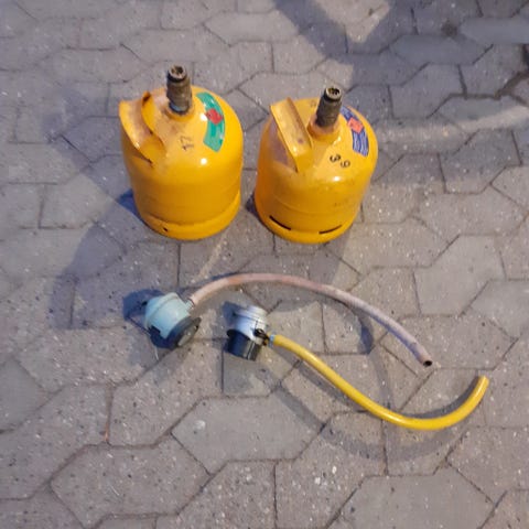 Gasflaske med slange og regulator