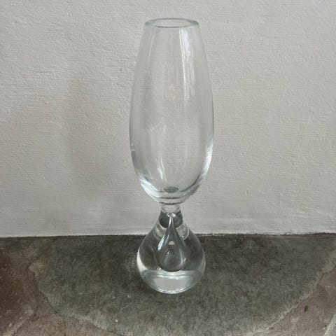 Glas, Vase, Johansfors, Flot vase / flaske af Bengt Orup Johansfors med grøngule striber. 18,7 cm høj og ca 7 x 7 cm