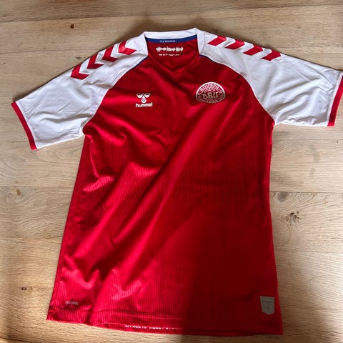 Hummel DBU hættetrøje i unisex størrelse S. Trøjen er rød og designet til fodboldbrug, med DBU-logo på brystet og Hummels karakteristiske vinkler på skuldrene.
