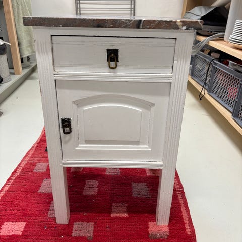 Senge eller lampebord i afsyret fyrretræ med marmor plade. Mål ca 38 x 42 cm. Ca 82 cm i højde. Skal afhentes i Middelfart midtby. (Jeg kan desværre ikke ændre i mærket, der naturligvis ikke passer)