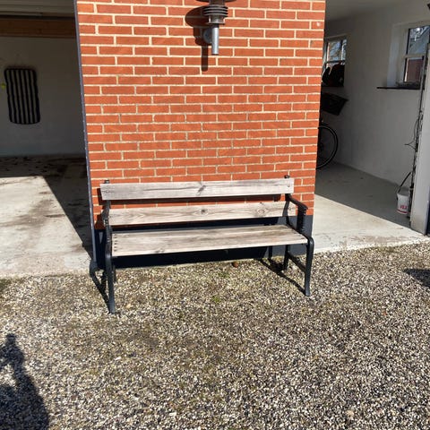 Havebænk i træ og metal. Bænken har sæde og ryglæn i trælameller monteret på en metalramme med ben, der fastgøres til underlaget. Egnet til udendørs brug i have, gård eller på terrasse. Klassisk parkbænksdesign med plads til flere personer ad gangen. Efter rengøring kommer det fineste ædeltræ frem og med lidt olie vil den stå som ny. Rustfri bolte, galvaniseret stel, ædeltræ.
