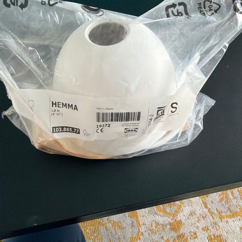 Lampeskærm sælges med fatning og ledning.