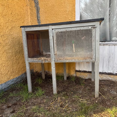 Model "Nice" Buret er både med en åben og en lukket del, hvor kaninen kan være når den skal hvile eller i ly for vejret.