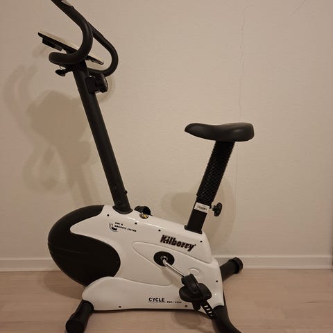 Kilberry motionscykel i sammenklappeligt design. Cyklen har sort stel med grønne detaljer og et digitalt display, der viser basisdata som tid, afstand og hastighed. Udstyret med justerbart sæde og styr samt pedaler med remme. Egnet til indendørs konditionstræning og let motion i hjemmet.