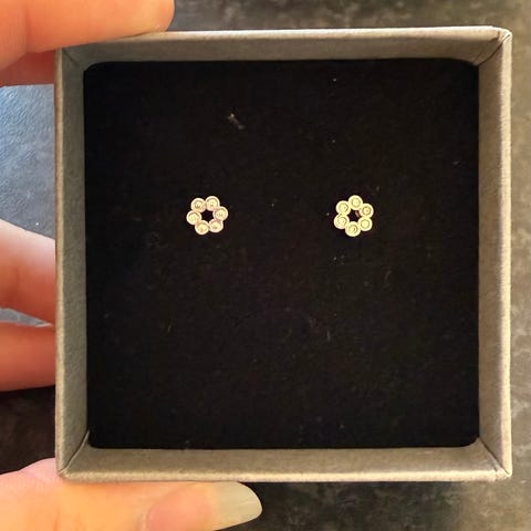 Ørestikker, sølv, 925 sølv ørestikker med stor zirkon ø 0,5 cm flotte og i orden