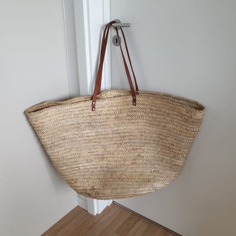 Robust strandtaske med læder på kant og håndtag h :34cm b:43x15