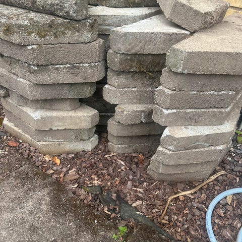 666 hele Kastrupfliser gives væk. Klassiske sekskantede betonfliser til terrasse, sti eller drivhusgulv.