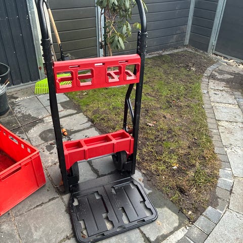 Med en maksimal belastning på 70 kg giver den pålidelig hjælp i hverdagen. Det bløde greb gør transporten komfortabel, og platformen på 39 × 28 cm giver god plads til emnerne. Når arbejdet er gjort, foldes vognen hurtigt sammen til kun 63,5 × 38,5 × 5,6 cm.