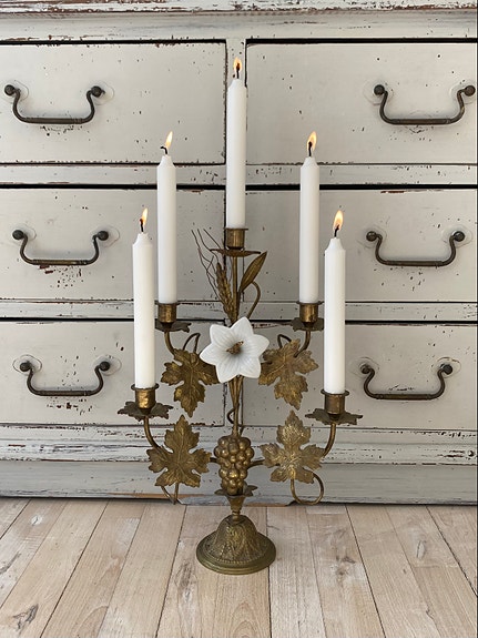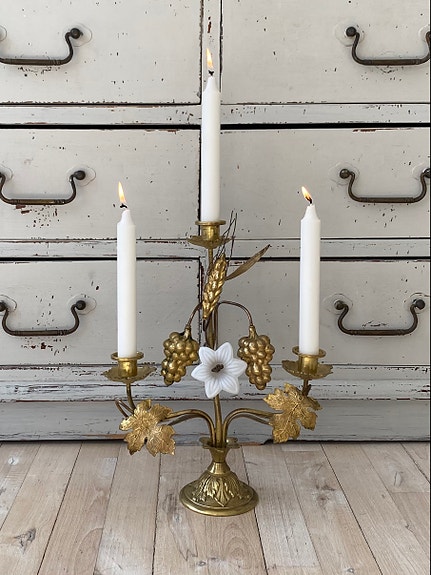 Antik fransk krystal frugtskål på messingfod