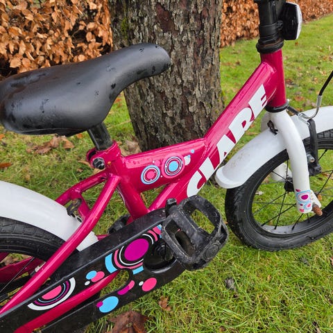 Farve: lyserød cykel med hvide dæk