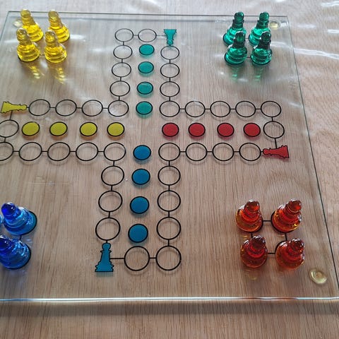 Hjemmelavet stort ludospil til 6 personer inkl. brikker i tilsvarene stor str