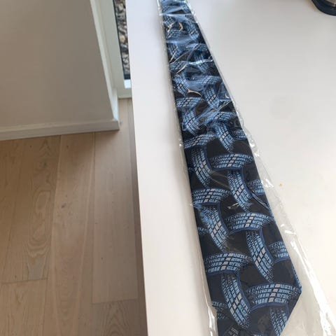 Oriflame slips til mænd i 100 % silke. Slips i rød grundfarve med gentaget elefantmønster i lyse nuancer. Foret er mørkeblåt. Egnet til brug sammen med skjorte og jakkesæt ved både formelle og mere uformelle anledninger.