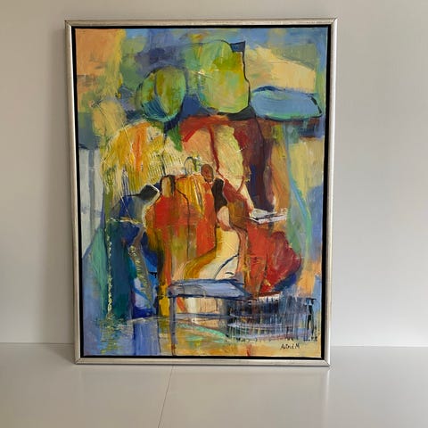 Akrylmaleri, Astrid Madsen, motiv: Abstrakt, b: 60 h: 80, Kom med et bud !