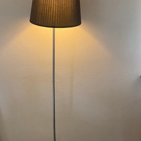 Super flot og moderne standerlampe, der giver et rigtig hyggeligt lys. Lampen har en sort stofskærm med et flot udstanset mønster, som kaster et dekorativt lysspil i rummet.