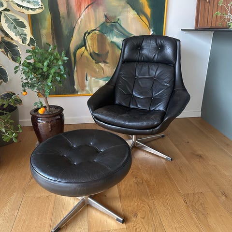 Hw Klein læder lænestole sæt på stjerne drejefod.