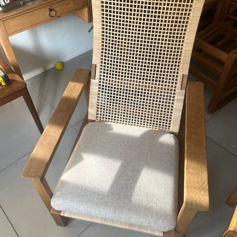 2 fantastisk slædestole klar til sommerhuset med nye betræk og helt i orden - slibning, lyd og sæbebehandling kan tilkøbes. Pris Per stk.
