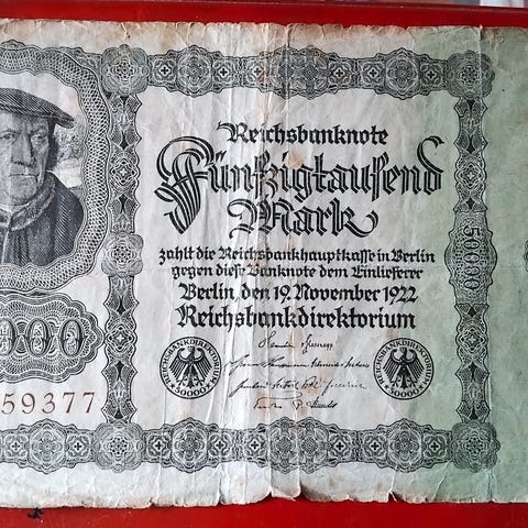 Vesteuropa Sedler TYSKLAND DEUTSCHLAND 50 MARK 1919 Reichsbanknote p66 Reihe 1