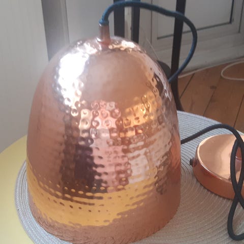 Virkelig flot lampe med kobber “bund”. 45 cm høj.