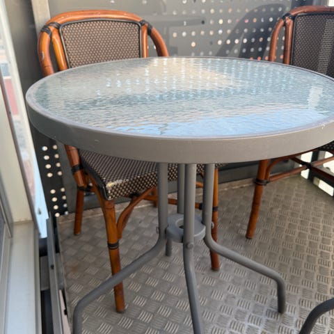 Rund jernbord med tykt glas plade