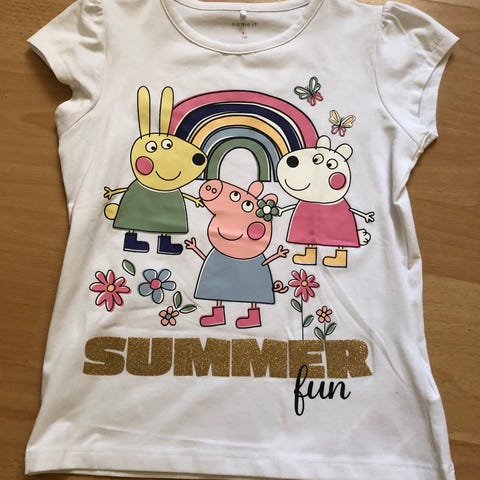 Helt ny t-shirts fra Name it sælges . Den er med det fineste print med Gurli gris . Den er aldrig brugt - aldrig vasket . Den er i str 110. Min datter er vokset fra den. Den sælges for 65kr
