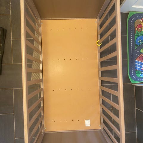 IKEA tremmeseng i hvid. Klassisk tremmeseng med lamelbunde og tremmer hele vejen rundt. Egnet til mindre børn/babyer.