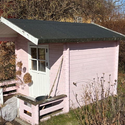 Legehus gives væk, men det skal adskilles for at komme ud. Det kan IKKE flyttes ud af haven samlet. Beklædningen er sømmet på og der er ikke synlige skruer indvendigt. Har ikke selv bygget det og ved derfor ikke hvordan det evt. kan adskilles. Tegl kan naturligvis tages af.