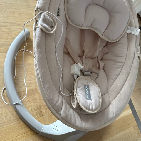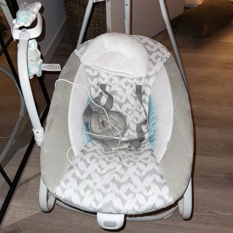 Ingenuity InLighten Bouncer holder din lille beroliget, trøstet og sikker ved din side. Det dybe, vuggende hoppesæde er foret med plysstoffer til at kramme din baby. Se, mens deres øjne stirrer på de blændende lys, der danser over baldakinens legetøjsbar. Lyt til rolige melodier og lyde, mens din baby nyder den beroligende bevægelse af vibrationer.