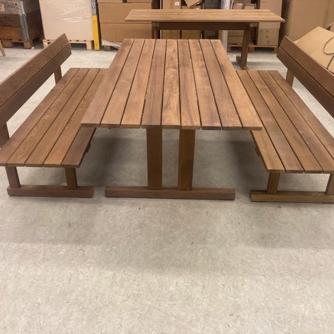FDB Møblers Teglgaard havesæt, bestående af 4 x m20 havestole med sort flagline samt 1 gange M21 havebord i 90 x 90 cm. Hele sættet er ubrugt og i rigtig god stand, dog kan mindre kosmetiske fejl forekomme.