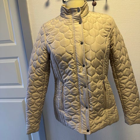 Brandtex Collection jakke til kvinder i sort polyester, størrelse 36. Jakken har gennemgående lynlås foran, stående krave og quiltede detaljer på skuldre og øverste del af ryggen. Fremstillet i 100 % polyester ifølge mærket. Velegnet som let overgangsjakke eller hverdagsjakke.