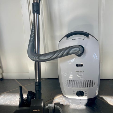 Miele S4212 støvsuger med justerbar sugestyrke fra 300 til 2000 W. Gulvstøvsuger i hvid med grå detaljer, fleksibel sugeslange og teleskoprør. Velegnet til almindelig støvsugning af gulve og tæpper i hjemmet. Kan afhentes i Skovlunde eller Frederiksværk