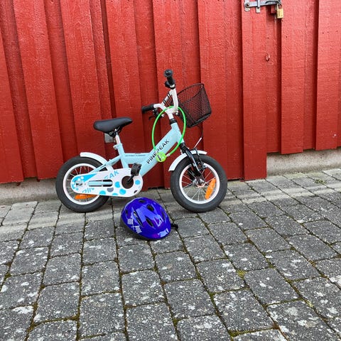 12" drengecykel. Stellet er fremstillet i aluminium. Cyklen har aftagelige støttehjul og både hånd- og fodbremse.