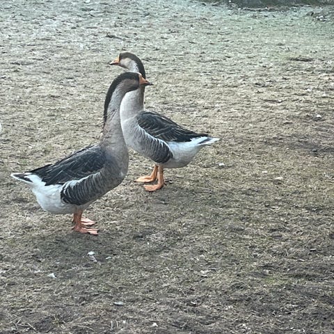 1 par gamle gæs, plus en efternøler fra forrige år.