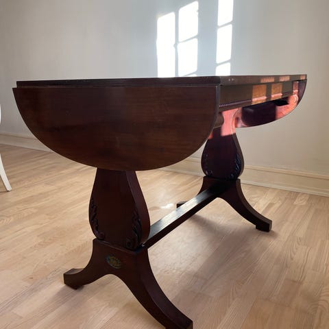 Spisebord med klap og skuffe i træ